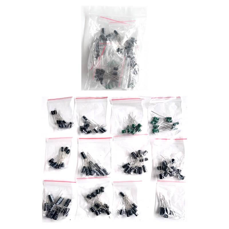 Kit de 120 Capacitores Electrolíticos de 12 diferentes valores; 10 piezas por cada valor: