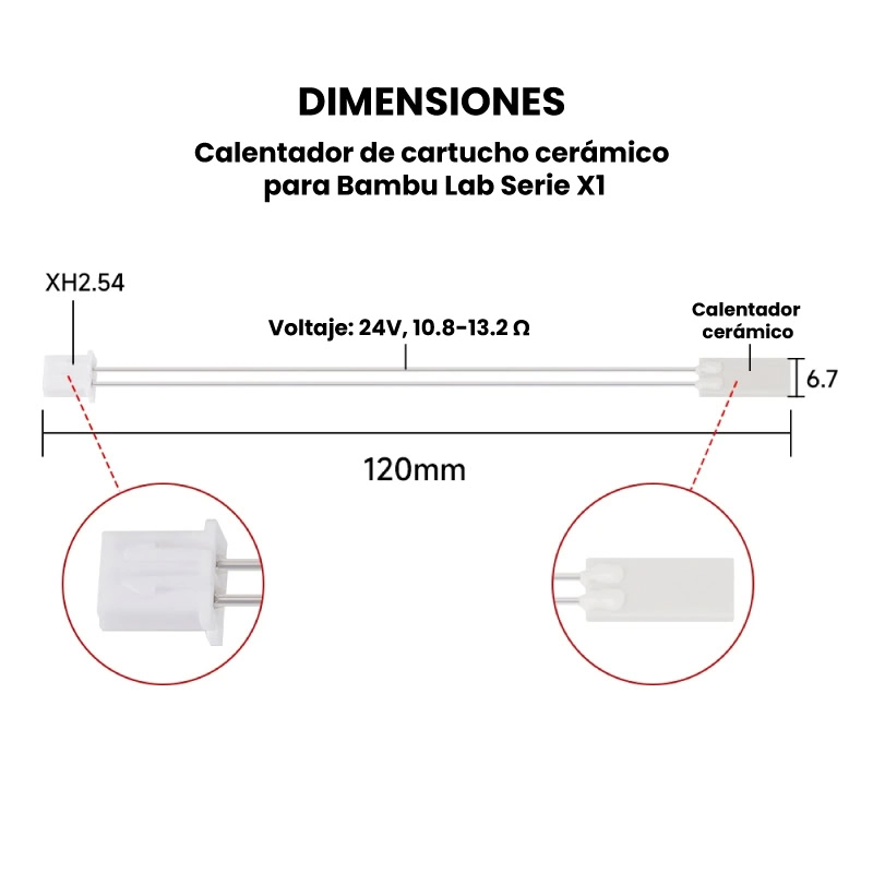 - Longitud del calentador cerámico: 120mm