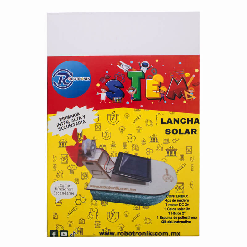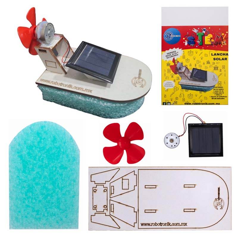 La Lancha solar STEM es un kit de armado que se mueve impulsado por la energía solar. Incluye todos los componentes necesarios: