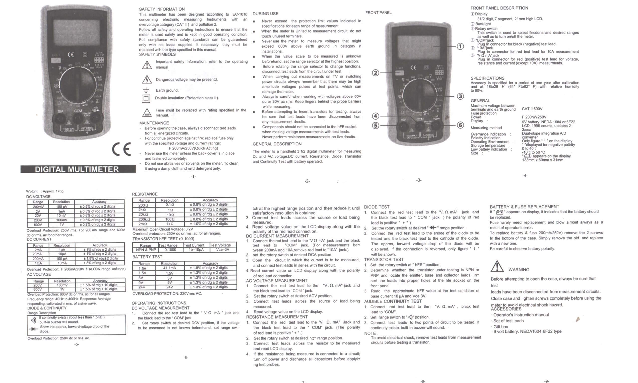 - Características del multímetro: