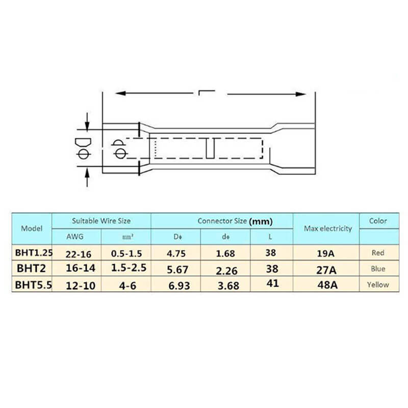 Kit de terminales BHT Termoretráctil es ideal para proyectos de reconexiones múltiples en exteriores y de uso automotriz, con estos conectores se crea una conexión confiable y de calidad ya que proporcionan una mejor calidad de conducción. Para el uso eficiente de estas terminales se requiere calentar la terminal, para ello puedes utilizar una Pistola de Aire Caliente. Si necesitas cable para tus conexiones, lo puedes encontrar aquí.