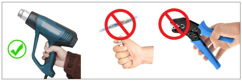 Te recomendamos utilizar las herramientas de Pistola de Aire Calor y Pelacables para hacer tus empalmes.