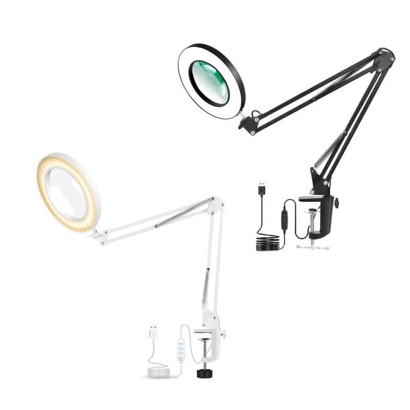 - Brazo ajustable: Un brazo flexible o articulado que permite mover y posicionar la lupa fácilmente en diferentes ángulos y alturas, según la necesidad.