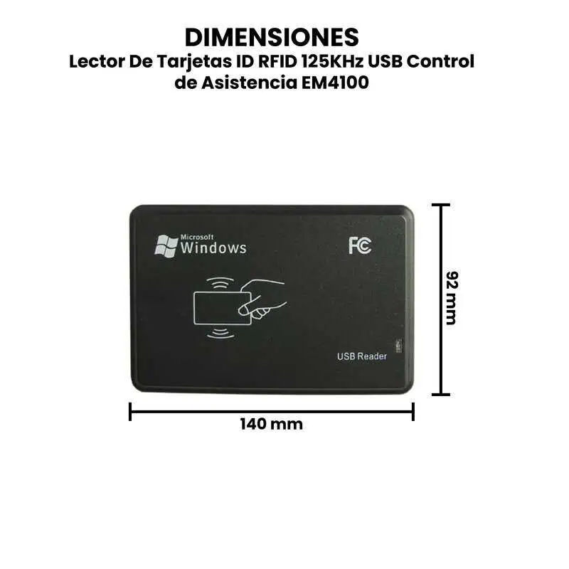 El Lector de Tarjetas ID RFID 125 KHz USB Control de Asistencia EM410 es un dispositivo electrónico diseñado para leer tarjetas o llaveros RFID que funcionan a una frecuencia de 125 KHz. Su funcionamiento se basa en la detección por radiofrecuencia: cuando una tarjeta RFID compatible se acerca al lector, este captura la señal única almacenada en el chip de la tarjeta y la envía a través de la conexión USB a una computadora o sistema de control. De esta forma, permite identificar usuarios de manera rápida y segura. Incluye: