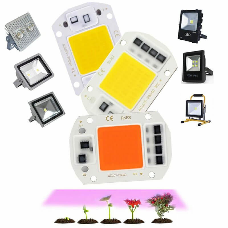 LED de 50W IC integrada, por lo cual no requiere drivers, condensadores o transformadores. Útiles para la luminarias de transito, estacionamientos, iluminación publicitaria, de paisaje/spotlightin, interior , escenarios, jardín o hidroponía, luz artificial para estimular el crecimiento de las plantas.