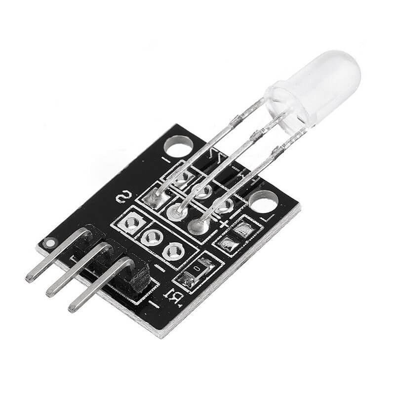 El LED Bicolor 5mm KY-011 consta de un LED cátodo común que está conectado a leds que emite una luz roja y verde, se puede ajustar la intensidad de color usando pulsos de ancho modulado (PWM) y utilizar 2 resistencias 330 Ω para limitar el voltaje y evitar que se dañe el dispositivo.