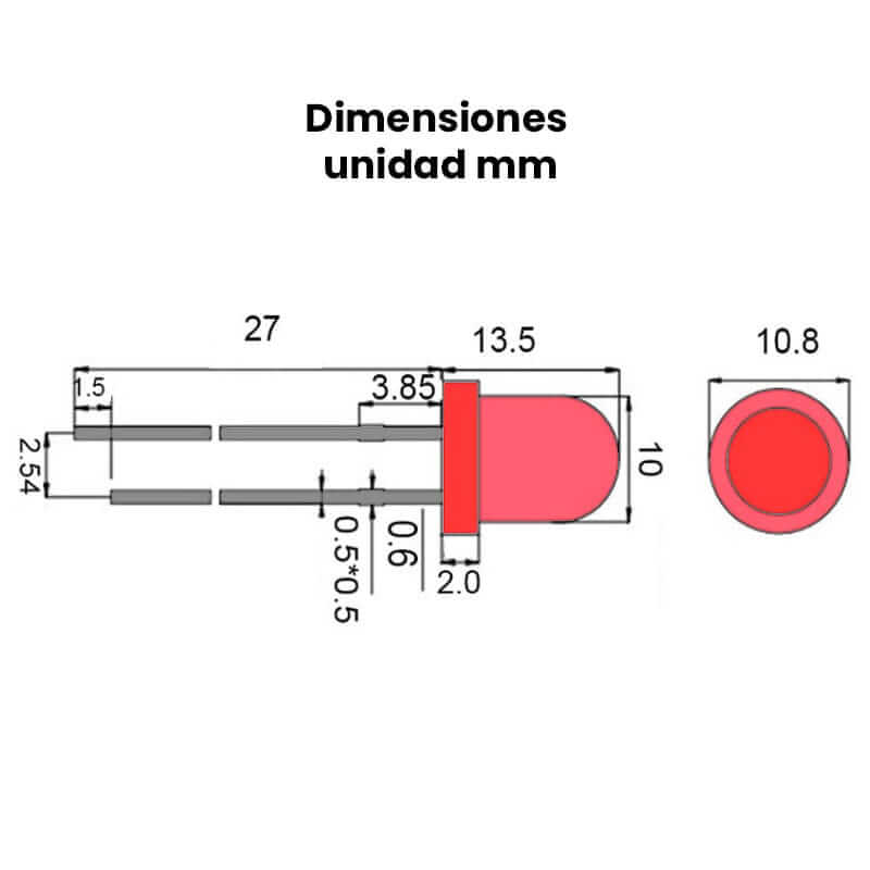 Led grande 10mm es un componente semiconductor conocido como “Diodos”, son de propósito general y capaces de emitir luz al ser atravesados por una corriente pequeña. Las siglas “LED” provienen del inglés “Light Emitting Diode”, que traducido al español es “Diodo Emisor de Luz”.
