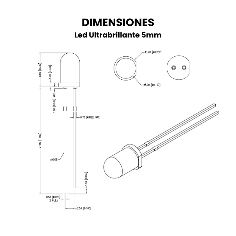 - Diámetro de encapsulado: 5mm