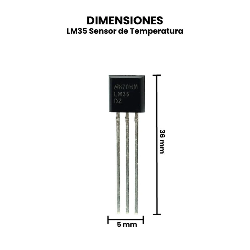 El LM35 es un sensor de temperatura, usualmente se conecta a fuentes de 5 V, posteriormente entrega la lectura en una salida analógica directamente en grados centígrados, por cada grado centígrado medido, entregará en su salida un valor de voltaje de 10 mV. Por ejemplo: una lectura de 150 °C equivale a 1500 mV y -55 °C equivale a -55 0 mV.