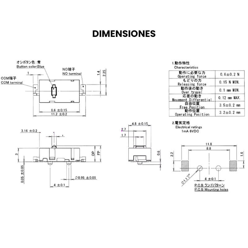 - Dimensiones:11.2 mm x 3mm x 4.8mm