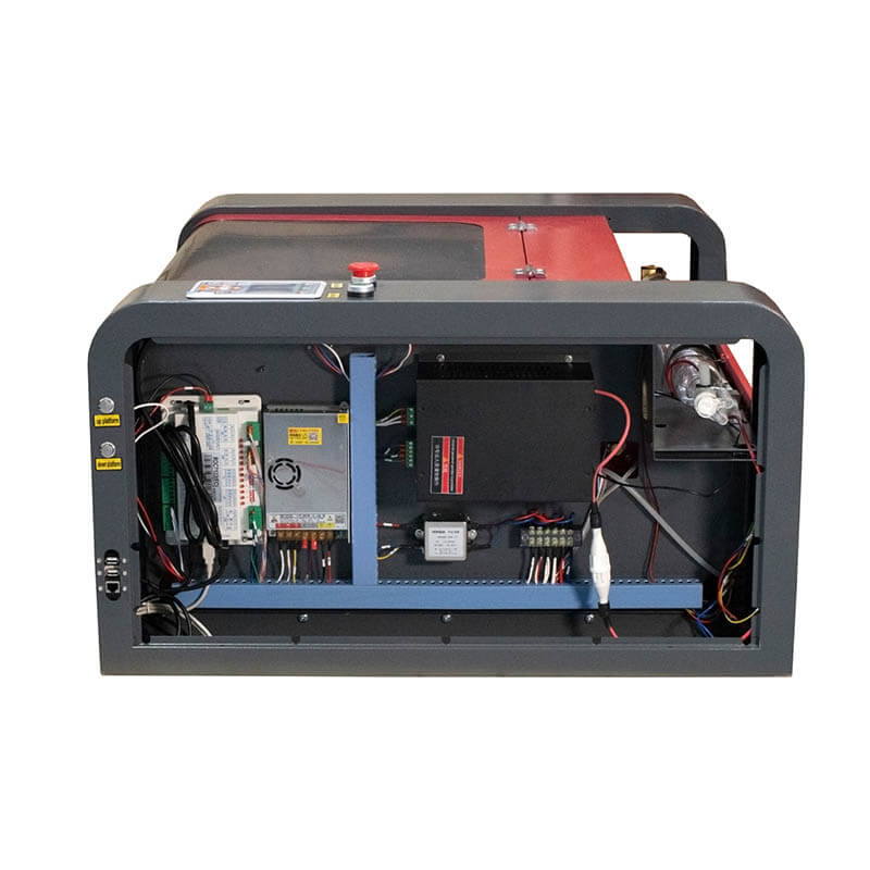Máquina de Grabado y Corte Láser CO2 5040 de 50W es la solución perfecta para grabar y cortar diversos materiales. Cuenta con una área de trabajo de 50×40 cm, incluye un potente láser de dióxido de carbono (CO2) de 50W, un panel de control intuitivo, eje rotativo y los siguientes accesorios.
