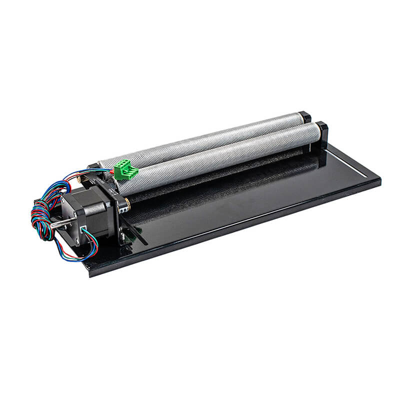 En ultimas versiones el eje rotativo cuenta con un conector de aviador, el cual se conecta en la parte interna del maquina laser. El eje rotativo afectara al eje Y.