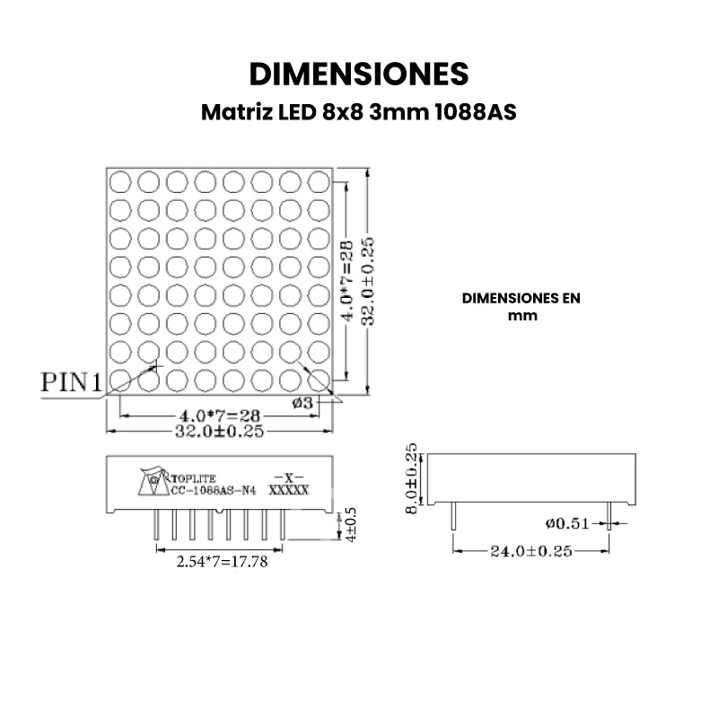 ESTRUCTURA DE LA MATRIZ LED 1088AS