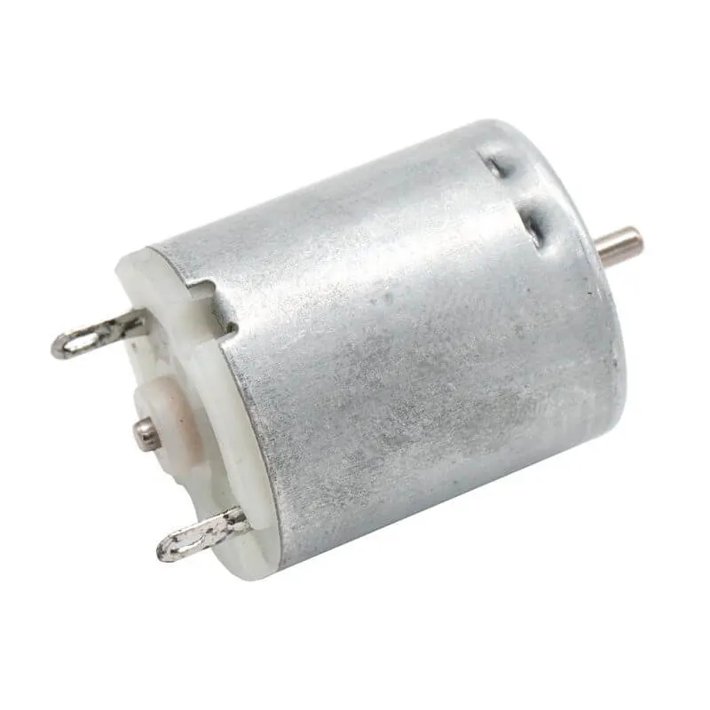 El Motor R150 es un motor de corriente directa (DC) que funciona en un rango de voltaje desde 1V hasta 3V lo que le permite alcanzar una velocidad máxima (sin carga) de 5000 revoluciones por minuto (RPM) en su eje circular de 4.5 mm de largo y de 2 mm de diámetro.