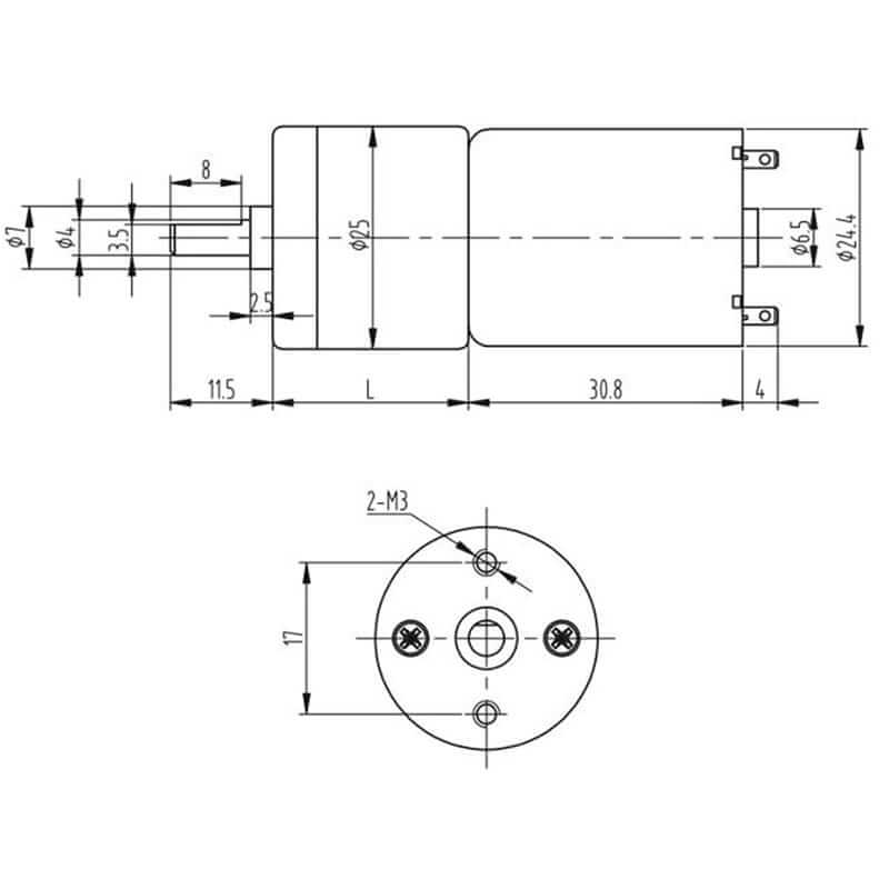 | Características | JGA25-370 6V 12RPM | JGA25-370 6V 60RPM | JGA25-370 12V 130RPM | JGA25-370 12V 620RPM |