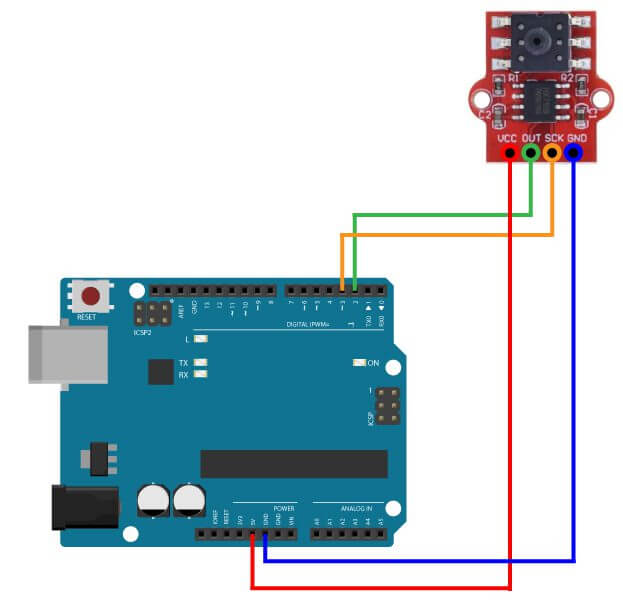 El sensor MPS20N0040D-S contiene internamente un puente de Wheatstone que permite obtener mediciones analógicas en la salida del sensor, este tiene una sensibilidad aproximada de 50mV/40kPa, sin embargo dependiendo del sensor puede llegar a ser distinta esta sensibilidad. El módulo contiene un circuito integrado HX711 que convierte estas mediciones analógicas obtenidas del sensor en digitales, para poder obtener el valor de estas mediciones usaremos un Arduino UNO y la librería del HX711, esta librería permite al HX711 comunicarse con el arduino utilizando solamente dos terminales (No es el protocolo I2C).