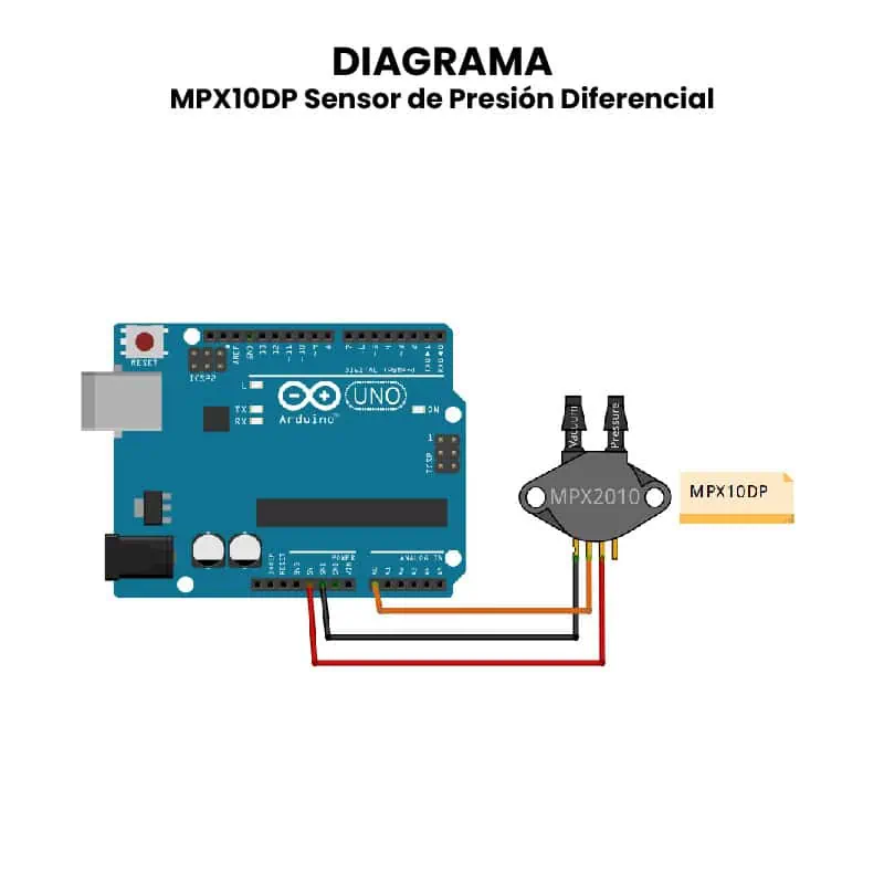 - Conecta el pin Vcc del MPX10DP a 5V, y el GND a tierra.