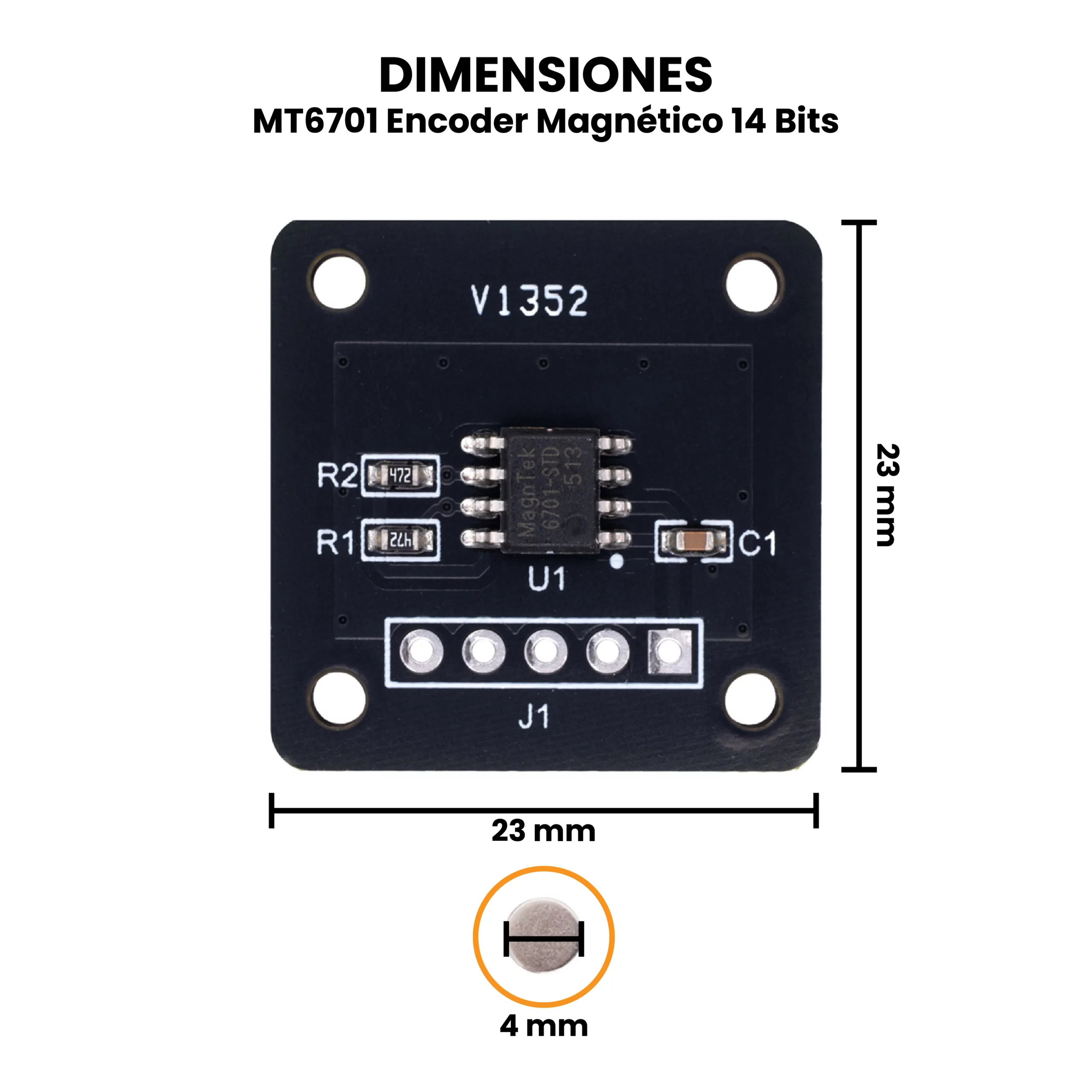 - Imán: 4 mm (diámetro) x 2 mm (ancho).