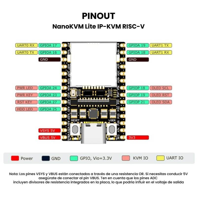 - Alimentación: Conecta el cable USB a una fuente de 5V/1A para encender el NanoKVM.