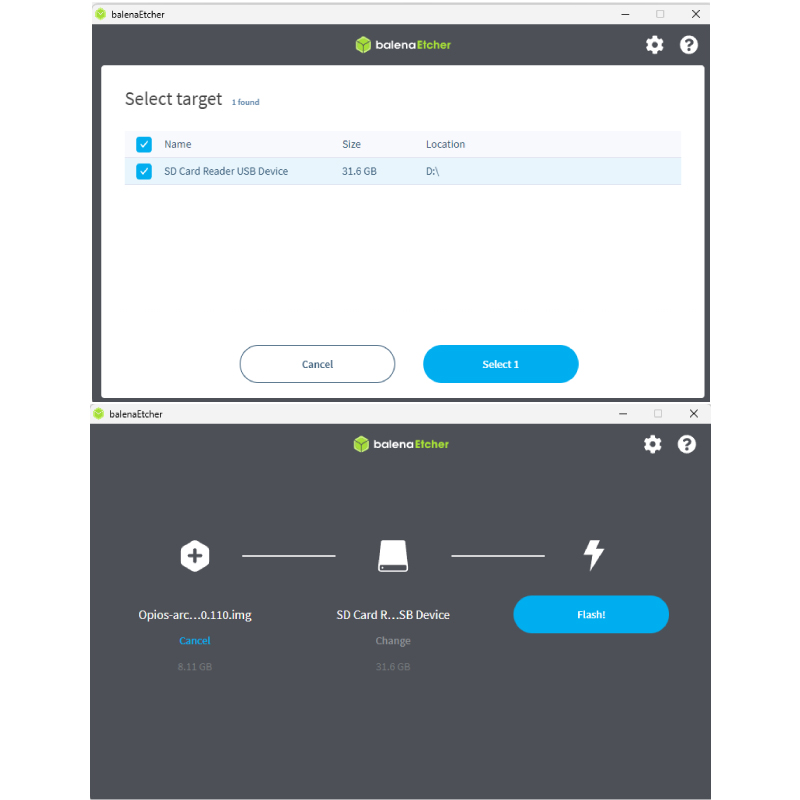 Ocuparemos el programa balenaEtcher que podrás descargar aquí y la imagen del sistema operativo que quieras en Orange Pi.