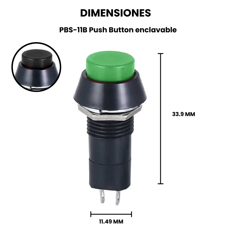 El PBS-11B Push Button enclavable es un tipo de interruptor o botón que tiene la capacidad de mantenerse en una posición activada incluso después de que se haya liberado la presión sobre el botón. Incluye tuerca y anillo de presión disponible en color: negro ,verde y rojo.