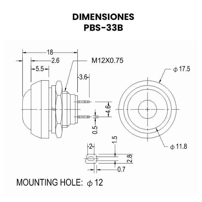 - Agujero de montaje: 12mm