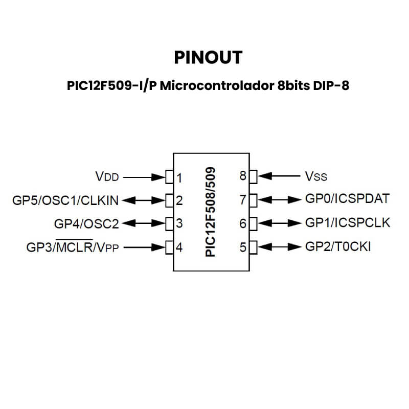 El PIC12F509-I/P es un microcontrolador de 8 bits en encapsulado DIP de 8 pines, ideal para proyectos sencillos y de bajo costo. Ofrece 1 KB de memoria Flash, 41 bytes de RAM, y 6 pines de entrada/salida digital configurables. Funciona con un oscilador interno de 4 MHz, sin necesidad de componentes externos, y opera con voltajes desde 2V hasta 5.5V. Su bajo consumo y simplicidad lo hacen perfecto para tareas básicas como el control de luces, lectura de sensores, sistemas de temporización o reemplazo de lógica discreta en proyectos electrónicos compactos.