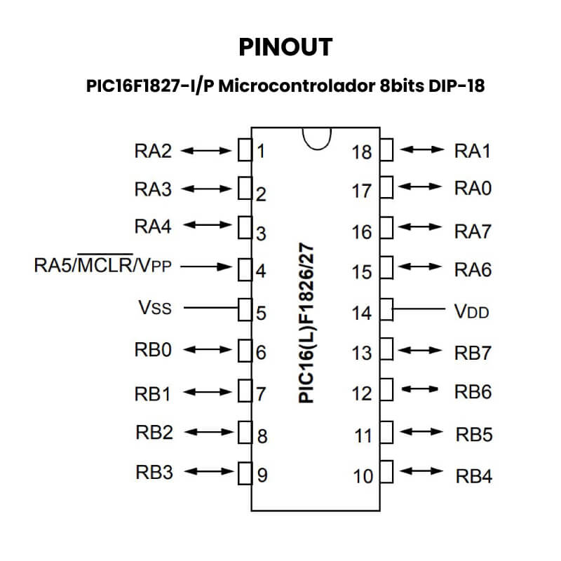 El PIC16F1827-I/P es un microcontrolador de 8 bits con 18 pines, ideal para proyectos más avanzados que requieren múltiples funciones en un espacio reducido. Tiene 4 KB de memoria para el programa, RAM de 384 bytes, y EEPROM de 256 bytes para guardar datos. Incluye módulos PWM, comunicación serial (USART, SPI, I²C) y un ADC de 10 bits con varios canales, lo que lo hace perfecto para controlar motores, leer sensores o comunicarse con otros dispositivos. Funciona desde 1.8V hasta 5.5V, con un oscilador interno de hasta 32 MHz, y es una excelente opción para automatización, electrónica portátil y proyectos complejos en poco espacio.