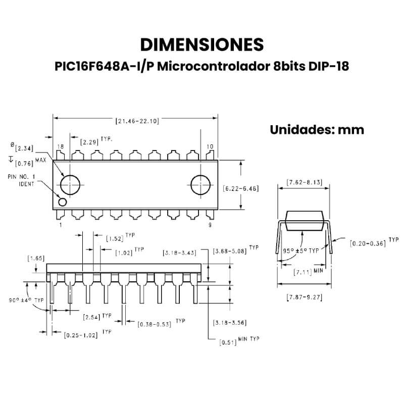 El PIC16F648A-I/P es un microcontrolador de 8 bits con encapsulado DIP de 18 pines, ideal para proyectos que requieren memoria y múltiples funciones de entrada/salida. Ofrece 7 KB de memoria Flash, 256 bytes de RAM y 256 bytes de EEPROM, permitiendo guardar tanto el programa como datos permanentes. Cuenta con 16 pines de I/O, módulo USART para comunicación serial, y temporizadores internos. Funciona con voltajes desde 2V hasta 5.5V y puede operar a velocidades de hasta 20 MHz con cristal externo. Es una excelente opción para sistemas embebidos, controladores simples y proyectos donde se necesite comunicación serial y buena capacidad de almacenamiento.