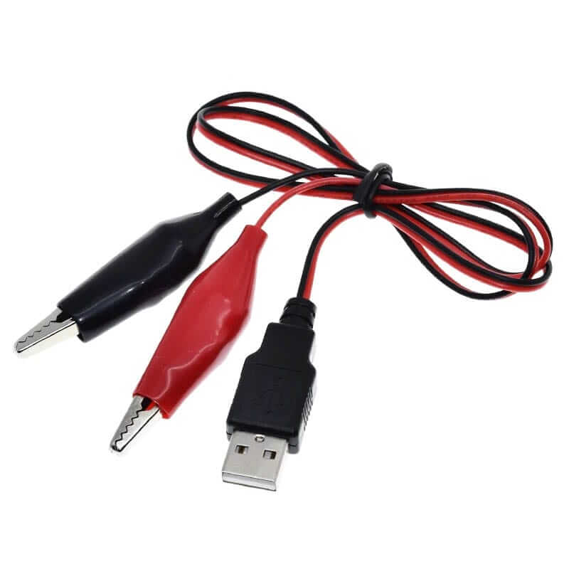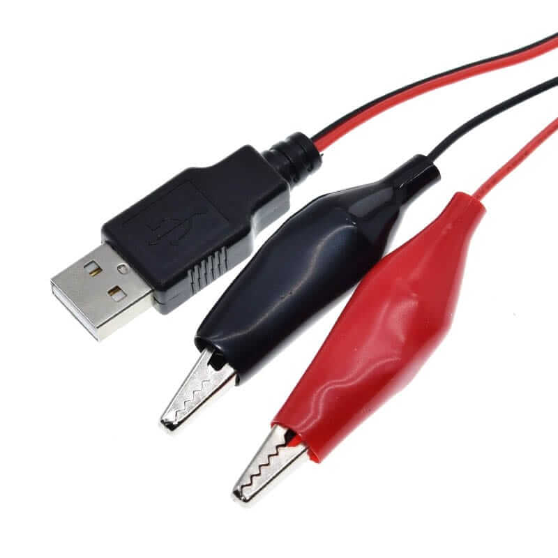 El Cable USB 5V con pinzas caimán es útil para transmitir corriente/voltaje continua a diferentes dispositivos gracias al conector USB Macho que se encuentra en su otro extremo y puede conectarse a adaptadores móviles de 5V. Tolera entre 3 a 5A (máx.).