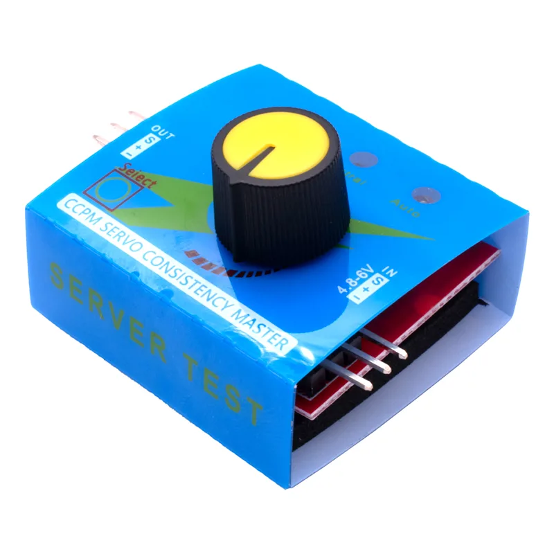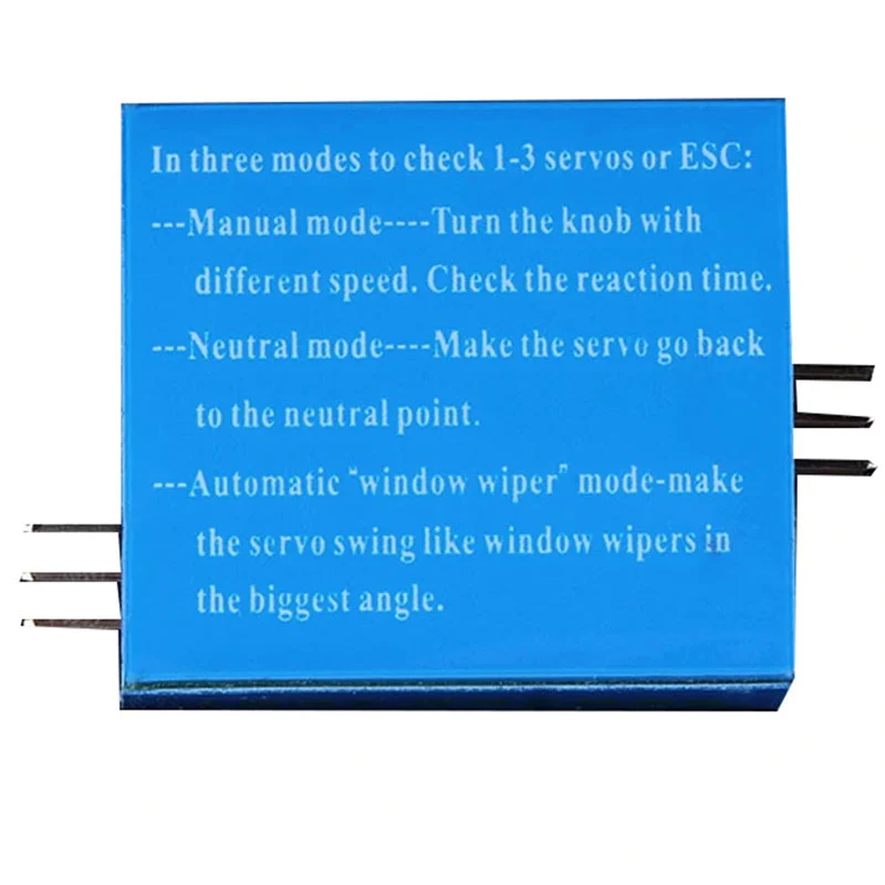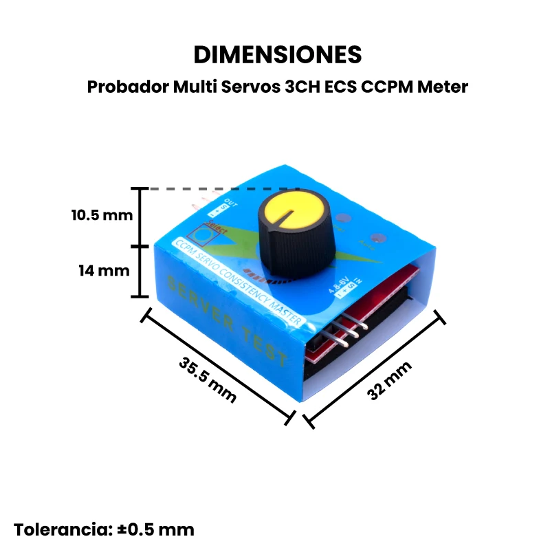 El Probador de Servo Tester 3CH ECS CCPM meter es un pequeño módulo generador de señal PWM que permite probar servomotores y controlar la velocidad de motores brushless mediante un driver ESC.