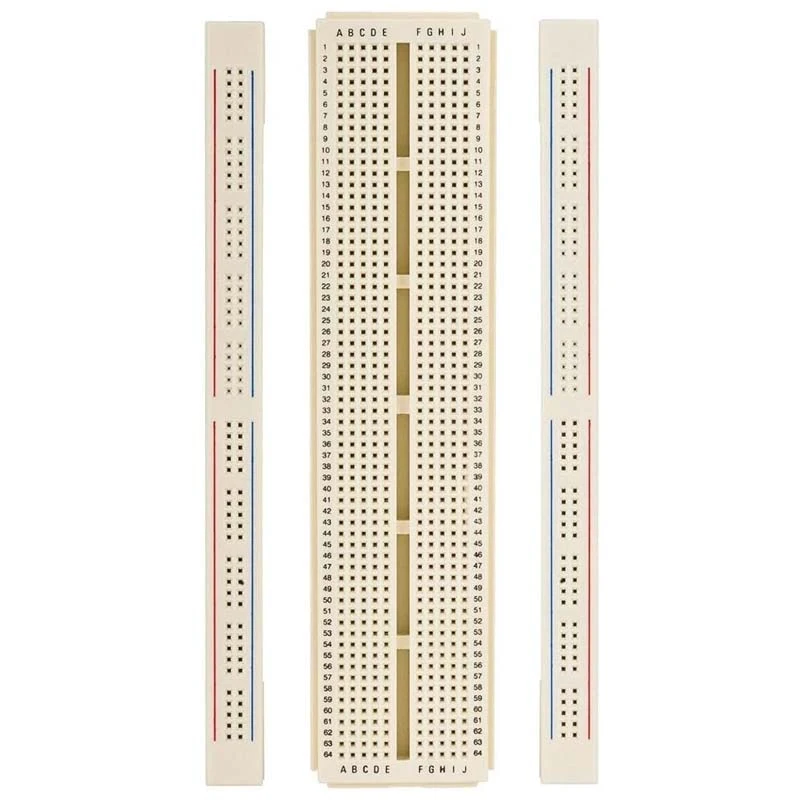 Protoboard Deslizable 840 puntos es una tablilla de pruebas para circuitos electrónicos, cuenta con una tableta central de 640 puntos y 2 bandas para distribución de vías de 100 puntos. Cada sección cuenta con su adhesivo doble, cada por separado.