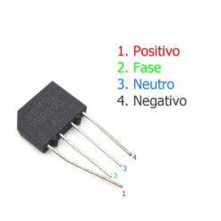 El puente rectificador está conformado internamente por 4 diodos de silicio, que se encuentren conectados en serie lo que permitirá la rectificación de onda completa.