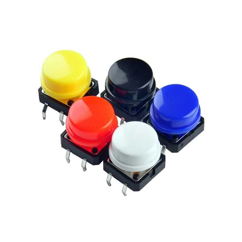 El Push Button Grande es un componente electromecánico también llamado pulsador, utilizado para realizar alguna función en especifico, ya que al ser presionado se conectan internamente los extremos del push permitiendo el paso de la corriente eléctrica a través del botón. Sus dimensiones son de 12 mm x 12 mm.