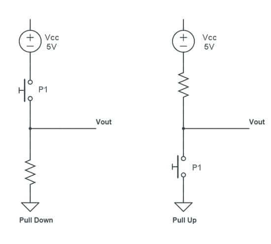 Estos dos tipos de resistencias nos aseguran que cuando el interruptor esté abierto tengamos un valor HIGH (5V) o LOW (0V).