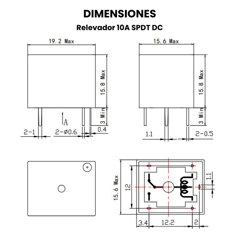 El Relevador 10A SPDT DC es un interruptor electromecánico que permite controlar cargas de hasta 10A mediante una señal de bajo voltaje. Está disponible en 3V, 5V, 9V, 12V y 24V, lo que lo hace ideal para automatización, control de motores, domótica y proyectos electrónicos.