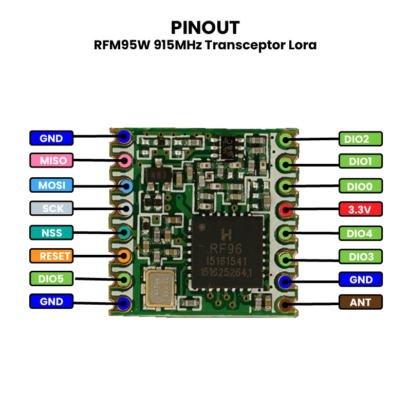 - Cables de conexión y, opcionalmente, un condensador de desacoplo (~100µF) cerca de VCC del RFM95W.