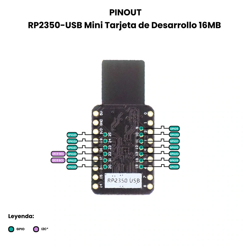 - La disponibilidad real de un periférico en un GPIO específico depende de la matriz de multiplexación del RP2350 y de la configuración realizada mediante el SDK o el entorno de desarrollo utilizado.