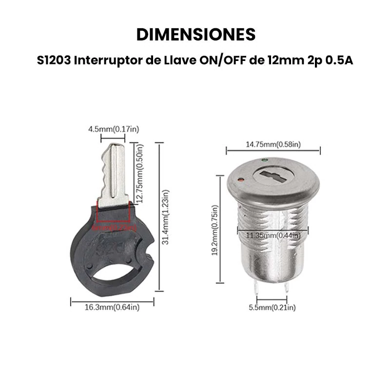 - Interruptor: 19.2 mm x 14.75 mm