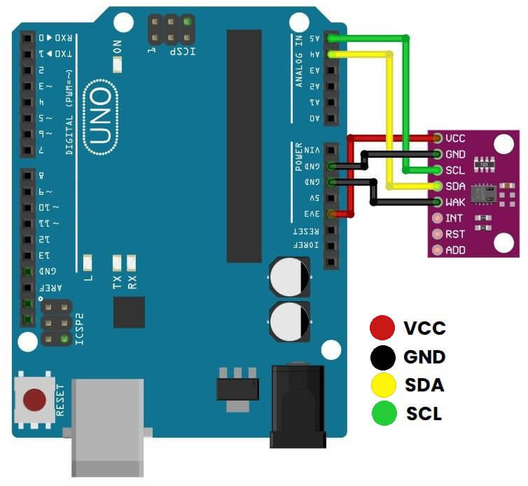 - SDA: Dirección de datos en serie, utilizada para transferir los datos a través de la comunicación I2C.