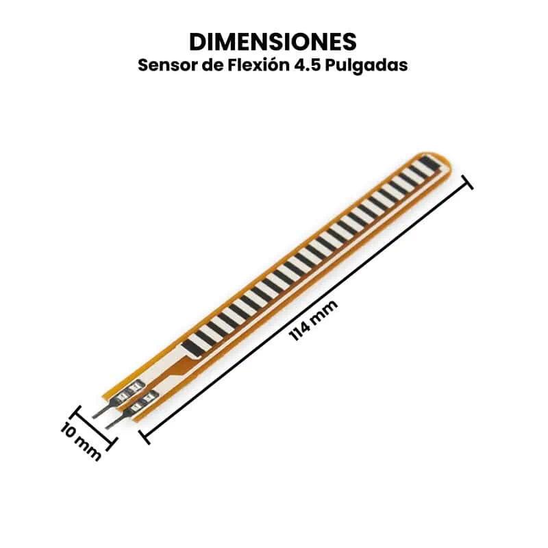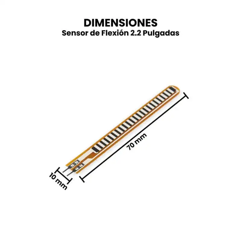 El Sensor de Flexión de 2.2 y 4.5 pulgadas es un dispositivo electrónico que varía su resistencia eléctrica en función del grado de curvatura al que se somete. Está compuesto por una tira flexible con un material resistivo en su interior, el cual incrementa su resistencia cuando el sensor se dobla y la disminuye cuando regresa a su posición recta. Su principio de funcionamiento se basa en la variación de la resistencia según la deformación mecánica, lo que permite convertir movimientos físicos o ángulos de flexión en señales eléctricas que pueden ser medidas por un microcontrolador. Estos sensores se utilizan principalmente en aplicaciones de detección de movimiento, gestos o posiciones dentro de proyectos electrónicos e interfaces hombre-máquina.