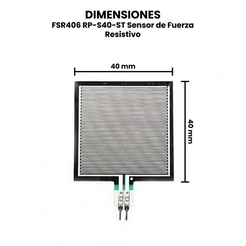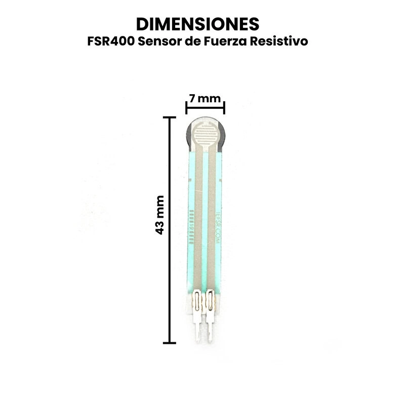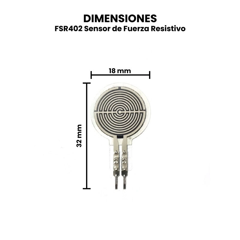 Los Sensores de Fuerza Resistivos (FSR) 400, 402 y 406 son dispositivos electrónicos que permiten medir la presión o fuerza aplicada sobre su superficie. Funcionan mediante un material resistivo que cambia su resistencia eléctrica en función de la fuerza ejercida: a mayor presión, menor resistencia, y viceversa. Este cambio de resistencia se puede leer mediante un circuito simple, generalmente formando un divisor de tensión conectado a un microcontrolador, lo que permite convertir la variación de resistencia en una señal eléctrica proporcional a la fuerza aplicada. Los distintos modelos, como el FSR 400, 402 y 406, se diferencian principalmente por su tamaño – forma.