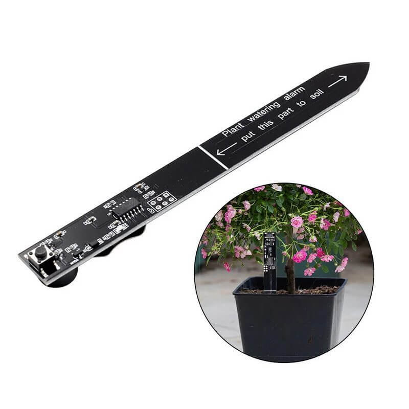El Sensor de Humedad con Buzzer Alarma de Riego es un módulo electrónico diseñado para detectar la humedad del suelo y emitir una alerta sonora cuando el nivel de humedad es bajo, indicando que la planta necesita agua. Este sensor funciona mediante una sonda higrométrica que mide la conductividad eléctrica del suelo: cuanto más húmedo está, menor es la resistencia eléctrica que detecta. El módulo compara esta lectura con un valor de referencia y, si la humedad cae por debajo del umbral establecido, activa un buzzer integrado que emite una alarma. Además, puede enviar una señal digital a una tarjeta de desarrollo. Funciona con una batería CR2032 (No viene incluida).