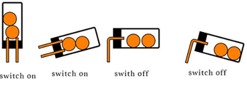 Se dispone de un cilindro cuya pared constituye un contacto eléctrico, mientras que el otro contacto está localizado en el centro de la base. Al inclinar lo suficiente el dispositivo, ambas esferas constituyen un puente entre ambos contactos, cerrando el circuito.