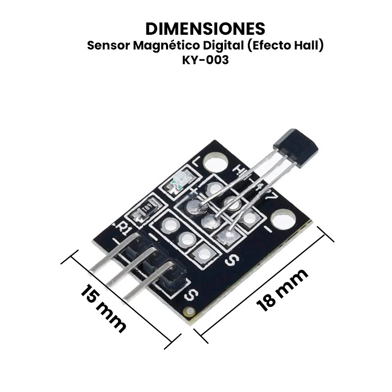 El KY-003 Sensor Magnético Digital (Efecto Hall) es un módulo que integra un sensor magnético de Efecto Hall con salida digital. Permite detectar de forma fácil, rápida y precisa campos magnéticos producidos cerca de sensor.