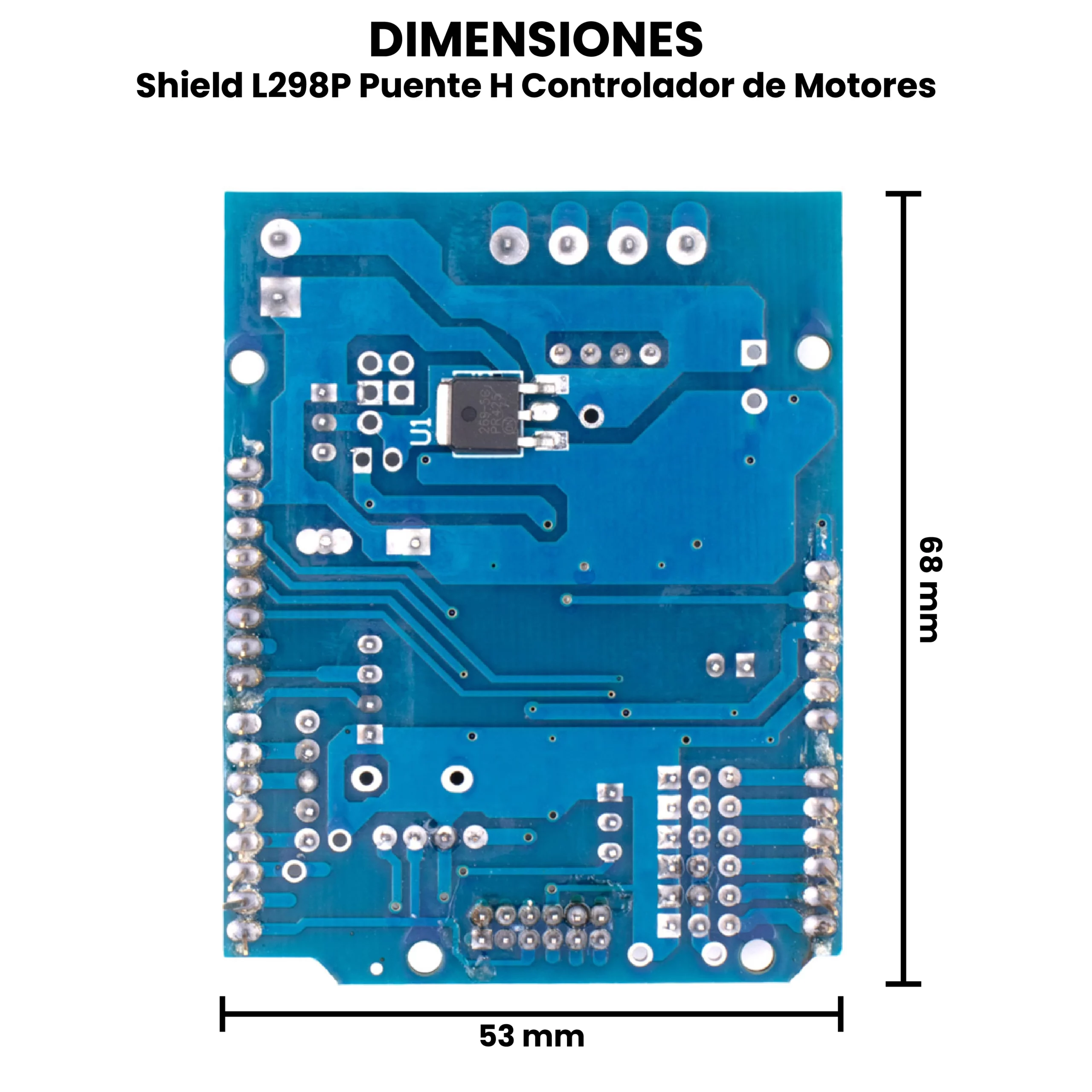 La Shield L298P Puente H se usa para controlar motores DC, por lo que es muy común en robots móviles, carros seguidores de línea, brazos robóticos y sistemas automatizados. Gracias a sus pines GPIO extra, también facilita conectar sensores, módulos Bluetooth y ultrasonido sin mucho cableado. Es compatible principalmente con Arduino Uno R3 y placas compatibles de 5 V, y puede adaptarse a otras tarjetas tipo Arduino con la misma distribución de pines.