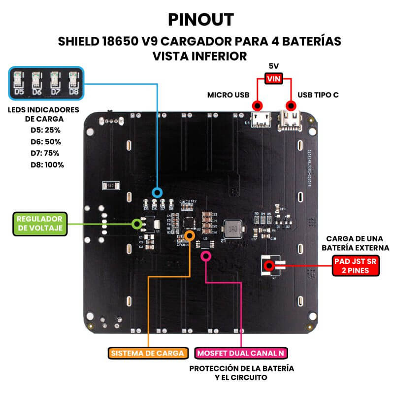 Shield para carga de baterías 18650, disponible en modelo V3, V8, V9.