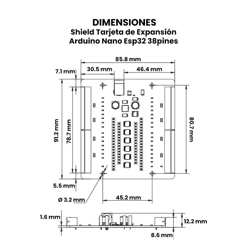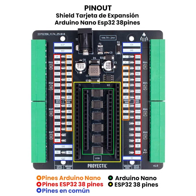 - Tipo: Shield para ESP32 38 pines y Arduino Nano