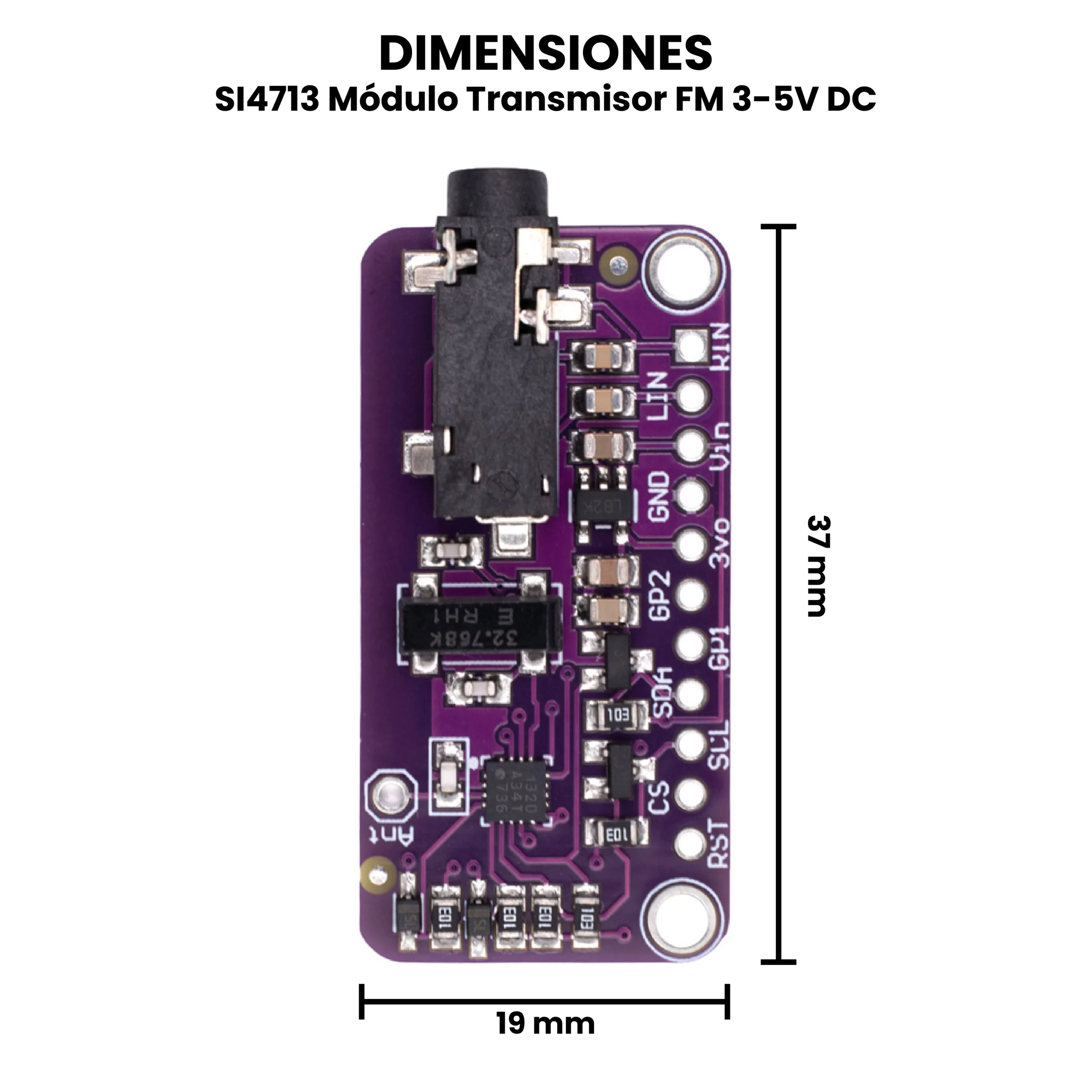 - Antena: Pin dedicado para antena externa (NO INCLUIDA).