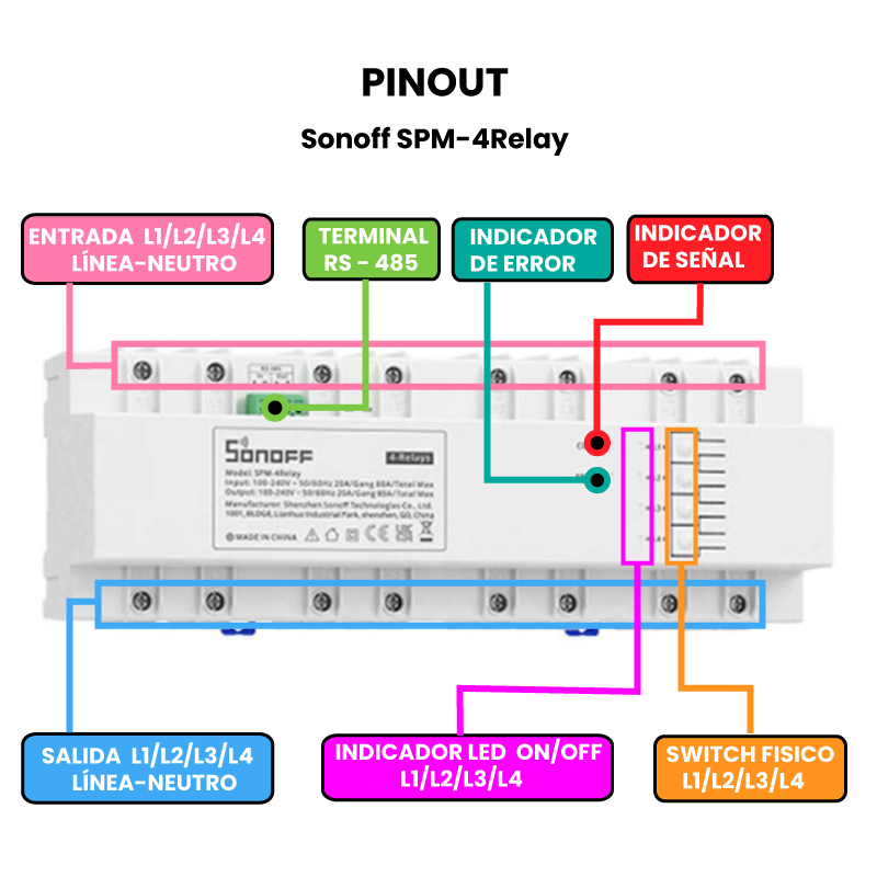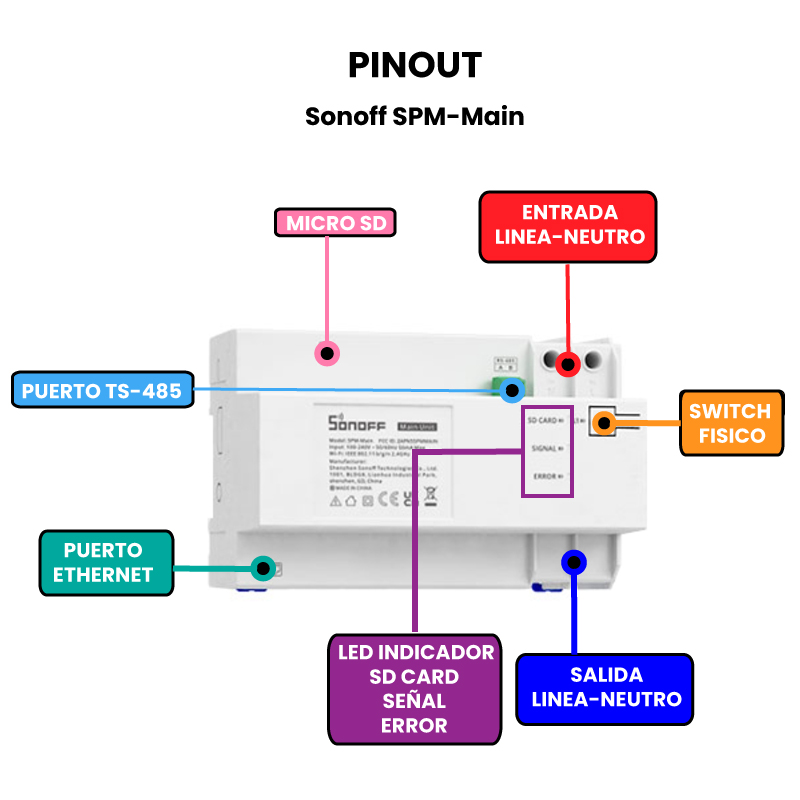 El Sonoff Medidor de Potencia Apilable Wi-Fi SPM Main/4Relay es un dispositivo avanzado de gestión energética diseñado para el monitoreo y control de consumo eléctrico en entornos domésticos y comerciales. Este sistema se compone de una unidad principal SPM-Main y módulos de relé 4Relay que se pueden apilar para extender la capacidad de monitoreo. La unidad principal se conecta a la red Wi-Fi o Ethernet, permitiendo a los usuarios supervisar el consumo energético en tiempo real a través de una aplicación móvil, lo que facilita la identificación de patrones de uso y la toma de decisiones para mejorar la eficiencia energética.